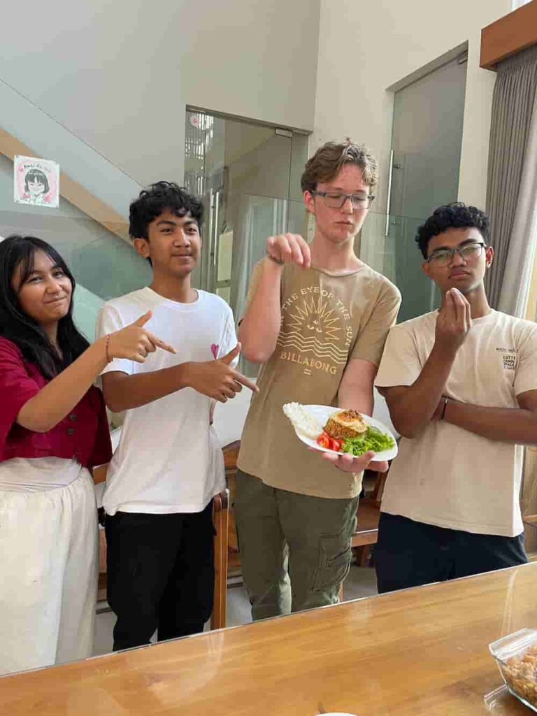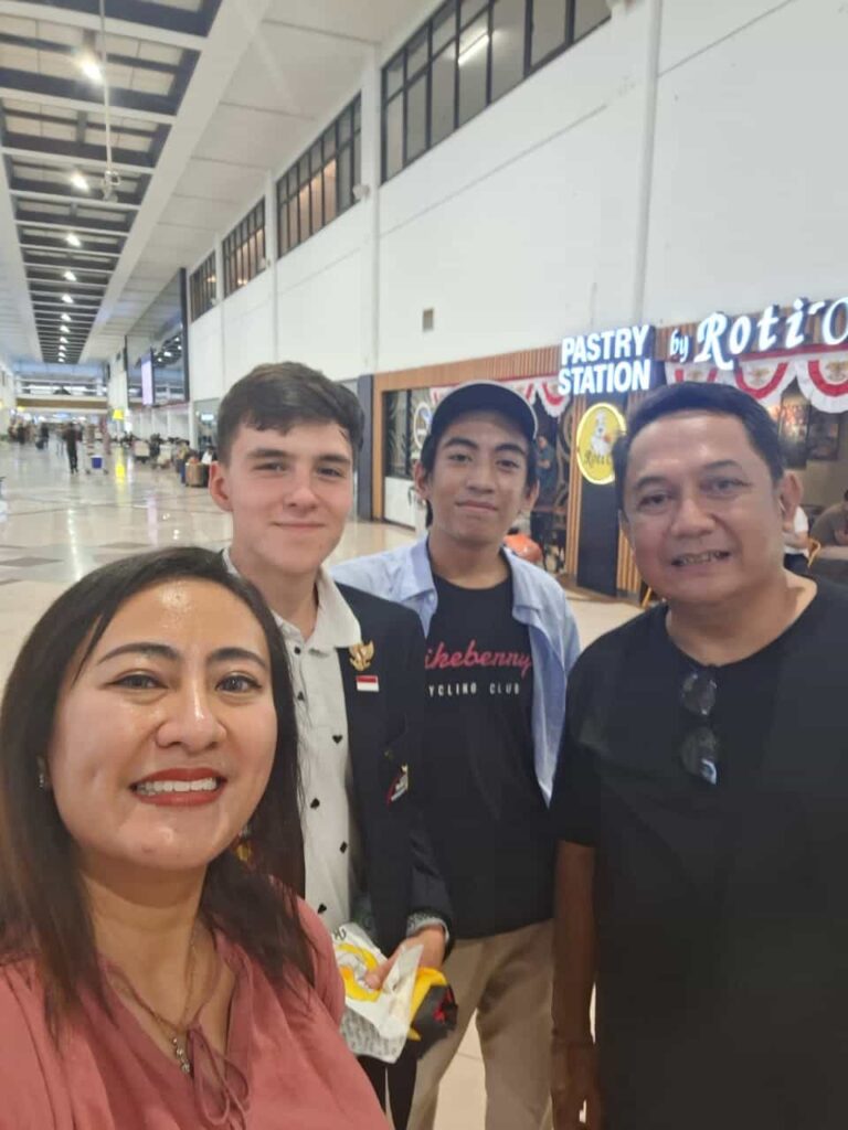 Es war wunderschön aus dem Flughafentor zu treten und die liebevollen Personen, unsere Gastfamilien, Mitglieder des Rotary Clubs, Klassenkameraden, die zur Begrüßung angereist waren nach langem Kontakt über Medien nun in Person zu sehen. Ein gewiss hohes Niveau von Herzlichkeit scheint hier ein großer kultureller Bestandteil zu sein. Ich fühlte mich aufgefangen, wie zuhause. Besonders von meiner unglaublich offenen Gastfamilie: Mama Nyoman Indah, Papa Tidar und Gastbruder Bagas empfangen. Meine Schwester Btari und weiteren Bruder Bima traf ich erst einige Tage später, als wir sie gemeinsam vom Flughafen abholten, da sie an einem Wettkampf in Malaysia teilnahmen.