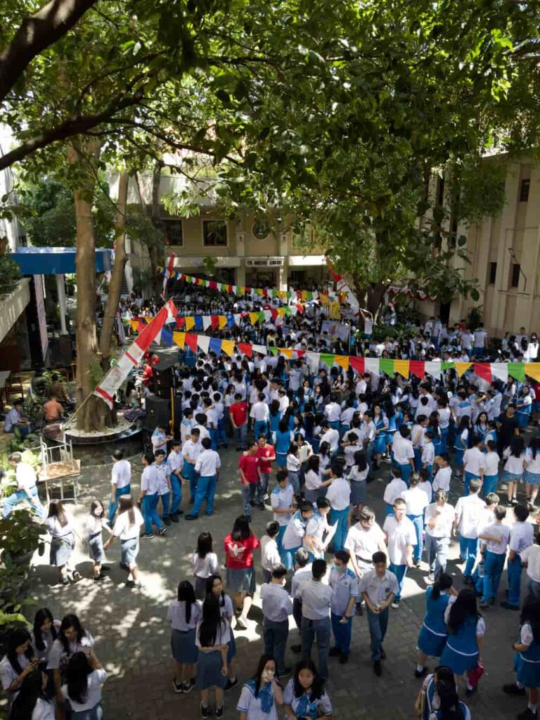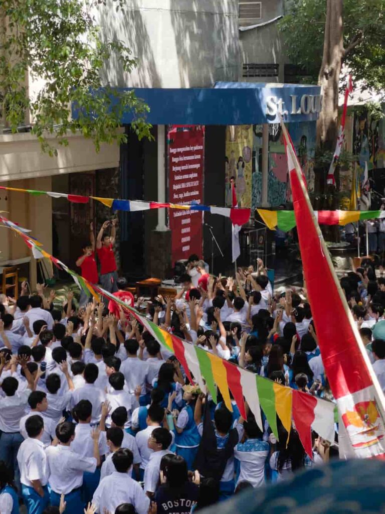 Der 12. August war nun mein erster Schultag an der höchst reputativ-kompetitiven katholischen High-School “St. Louis 1”, welche als zweitbeste im gesamten Land eingestuft ist. Erst einmal, das Spektrum an Aktivitäten, zu denen sich Schüler melden können ist massiv. Es gibt mindestens 60 verschiedene “Extracurricular” (”Ganztagsangebot” in Deutschland), die sich in akademischen, soziologischen, kreativen, fördernden und Sportbereichen ausbreiten wie zum Beispiel ein Club für höhere Mathematik und Taekwondo (meine beiden Wahlen). Oftmals verlasse ich während eines regulären Schultags, der um 06:00 beginnt und gegen 14:30 durchschnittlich endet, erst gegen 18:00 die Schule, aufgrund der Hingabe meinerseits zuwegs jener Angebote. Ebenfalls werden die Schüler in Klassengruppen eingeteilt, deren Unterrichtsthemen sie sich in Form von Paketen, dem Schuljahr voraus ausgewählt haben, wie zum Beispiel Paket 1, welches folgende Fächer beinhaltet: Mathematik, Höhere Mathematik, Physik, Wirtschaft, Staatslehre, Englisch, Indonesisch, Mandarin, Sport, Informatik, Religion.